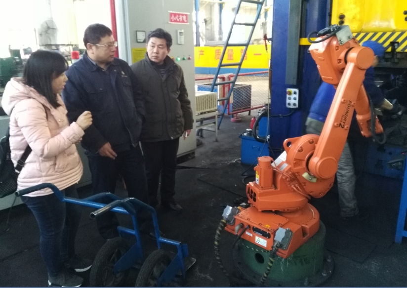 2016年12月14日,机电工程系派出工业机器人技术专业负责人李琦、数控技术专业负责人魏林、实训中心主任杜世法三位老师教师赴兴城市粉末冶金有限公司考察交流。我院教师向企业介绍了学院的办学情况、机电工程系的专业设置与人才培养情况。该公司李希良总经理向考察组介绍了企业的发展历史、经营情况,并带领教师参观了各生产车间与生产设备。该企业生产设备主要有各型数控机床、工业机器人、冲压模具等,与机电工程系各专业契合度较高。该企业接下来还要进行自动生产线的改进,并向智能制造方向加大投入力度。